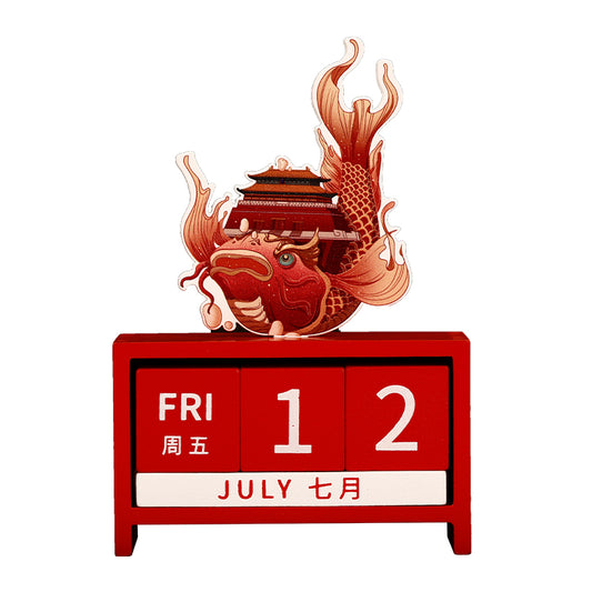 Calendrier perpétuel décoratif de bureau en blocs de construction de style chinois