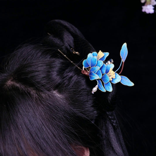 Intangible Cultural Heritage Silk Velvet Hairpin - Elegant Floral Design
