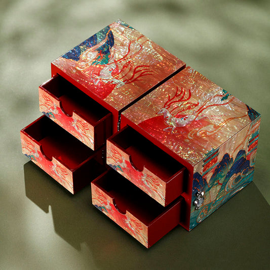 Chinese Mother-of-Pearl Jewelry Box - Handmade Luodian Lacquerware with Double/Triple Doors, ICH Heritage Art