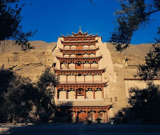 Ce côté s'inspire de la grotte 96 des grottes de Mogao (Dunhuang, Chine), classée au patrimoine mondial de l'UNESCO. L'imposante pagode à neuf étages , construite sous la dynastie Tang (618-907 apr. J.-C.), abrite une statue en argile de 35,5 mètres de haut du Bouddha Maitreya (le Bouddha du Futur). Avec sa façade en bois vermillon et ses avant-toits à plusieurs niveaux, la pagode symbolise la dévotion impériale et la fusion des arts bouddhistes chinois et d'Asie centrale. L'expression sereine et les gestes des mains ( mudras ) de Maitreya reflètent les thèmes de l'espoir, de la compassion et de la quête de l'illumination par l'humanité.