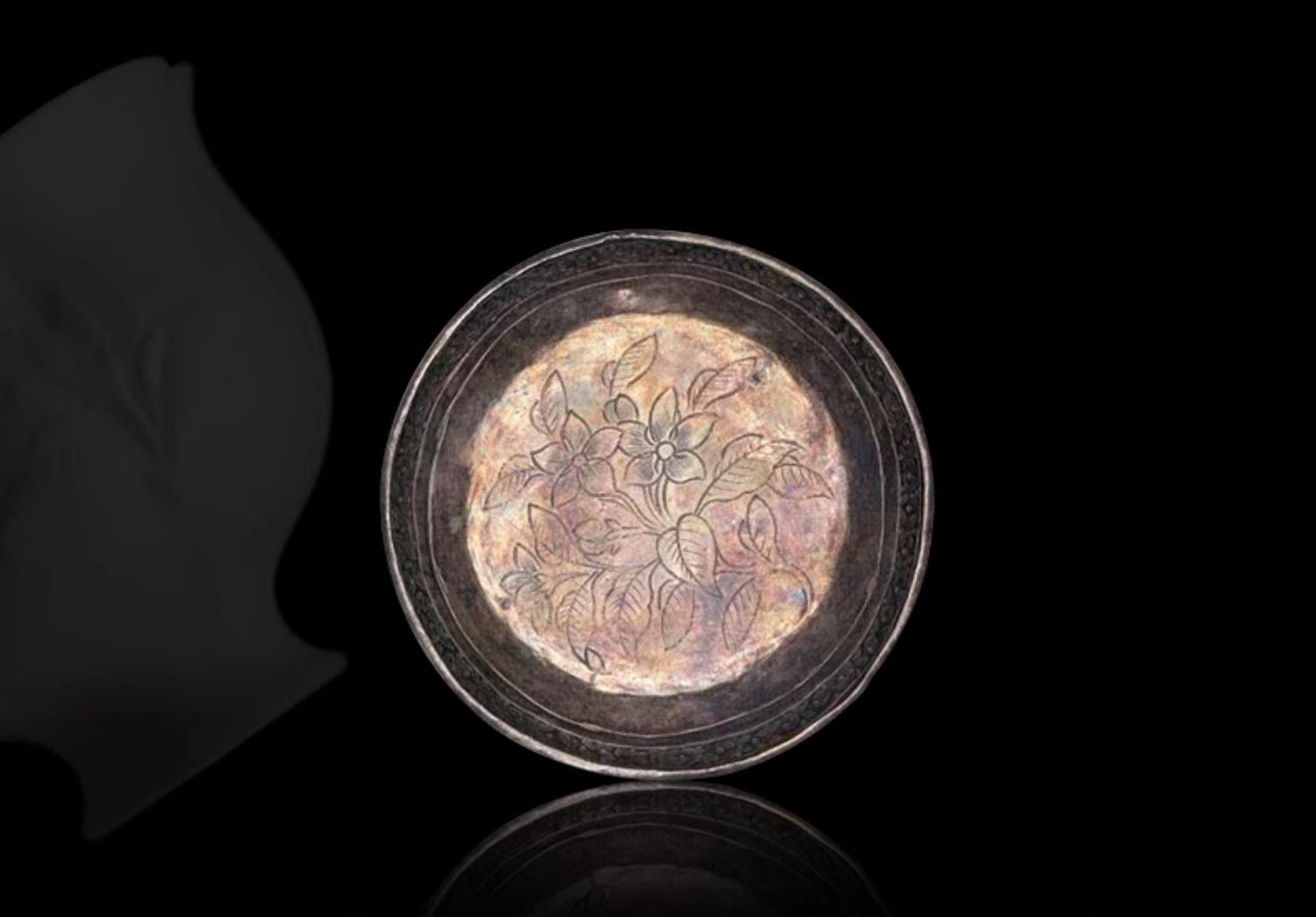 Two pieces from a nine-tray silver set unearthed in Jiangsu. Each tray shares identical dimensions (wide rim, shallow belly, flat base) and bears the craftsman’s mark “Zhang Silang” at the bottom.