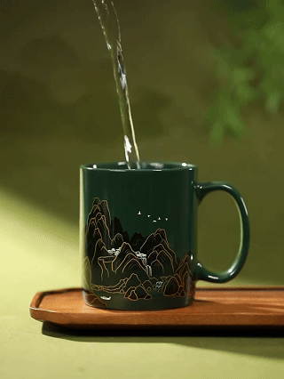 The mug’s thermochromic effect transports you to the serene landscapes of Jiangnan’s water villages. Meticulously crafted to mirror the intricate details of classical artifacts, its color palette blends artistry and precision, as if stepping into a living painting. A skiff glides across tranquil waters, surrounded by lush emerald mountains and flocks of birds soaring through the mist. Every sip unveils a scene where tradition and nature converge in poetic harmony.