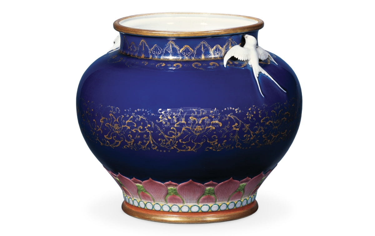 - Design Element: Qing Qianlong Jiqingcai (underglaze blue and white porcelain) "Haiyan Heqing" motif