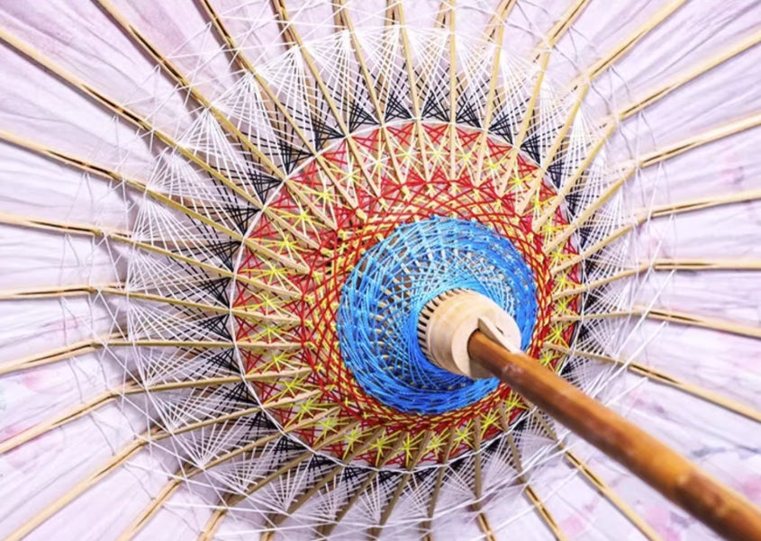 The fully-stitched technique, originally developed for imperial court umbrellas, represents a pinnacle of traditional craftsmanship. Renowned for its technical complexity, this method creates an exceptionally robust and durable structure capable of withstanding strong winds. Each umbrella requires meticulous hand-stitching with over 2,800 precise stitches to complete.