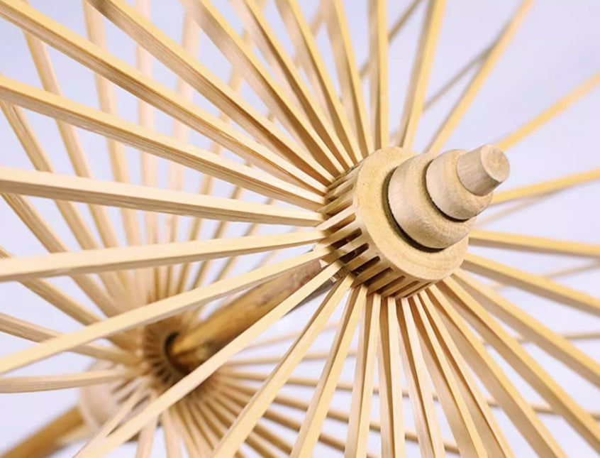 The umbrella ribs are crafted from meticulously selected, thick and sturdy Moso bamboo aged over three years, sourced from remote mountain regions. Using traditional mortise-and-tenon joinery techniques, the 28 ribs are interlocked to create an oil-paper umbrella that is exceptionally robust, stable, and durable.