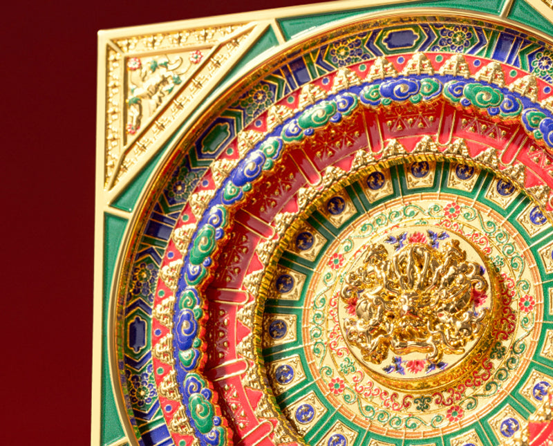 Most grand halls in the Forbidden City feature caisson ceilings—ornate vaulted structures that rise upward like an umbrella or canopy. These ceilings are typically lavishly gilded in pure gold, occasionally accented with painted motifs. The Wanchun Pavilion in the Imperial Garden houses a uniquely designed caisson ceiling adorned with gilded coiled dragons and painted intertwining peony patterns. Its layered, tiered structure stands out as a distinctive masterpiece.